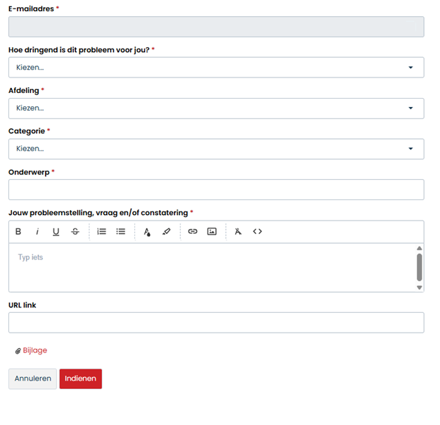 Dit veld wordt automatisch ingevuld. - Hoe dringend is dit probleem voor jou?
